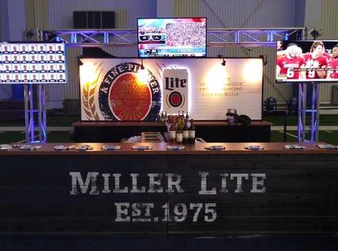 Miller Lite Bars are a robust investment just as the taste, 40" H and Back Sign is 50" H with the Total Dimensions: 12' L x 7' W x 8’ H. Let HWP help you create an experience for your audience to enjoy! Miller Lite was represented well with the debut of these bars at the BWW Conference, the Daytona 500 as well as The Lions Draft Day, all in 2019.